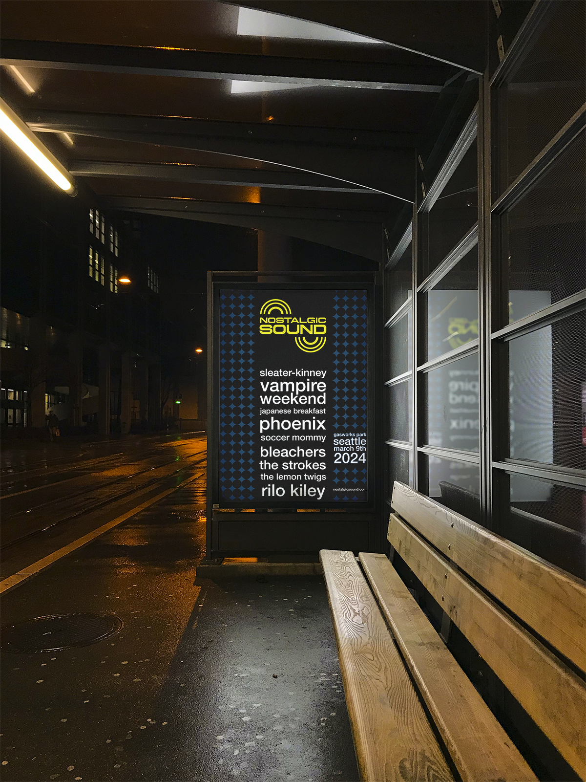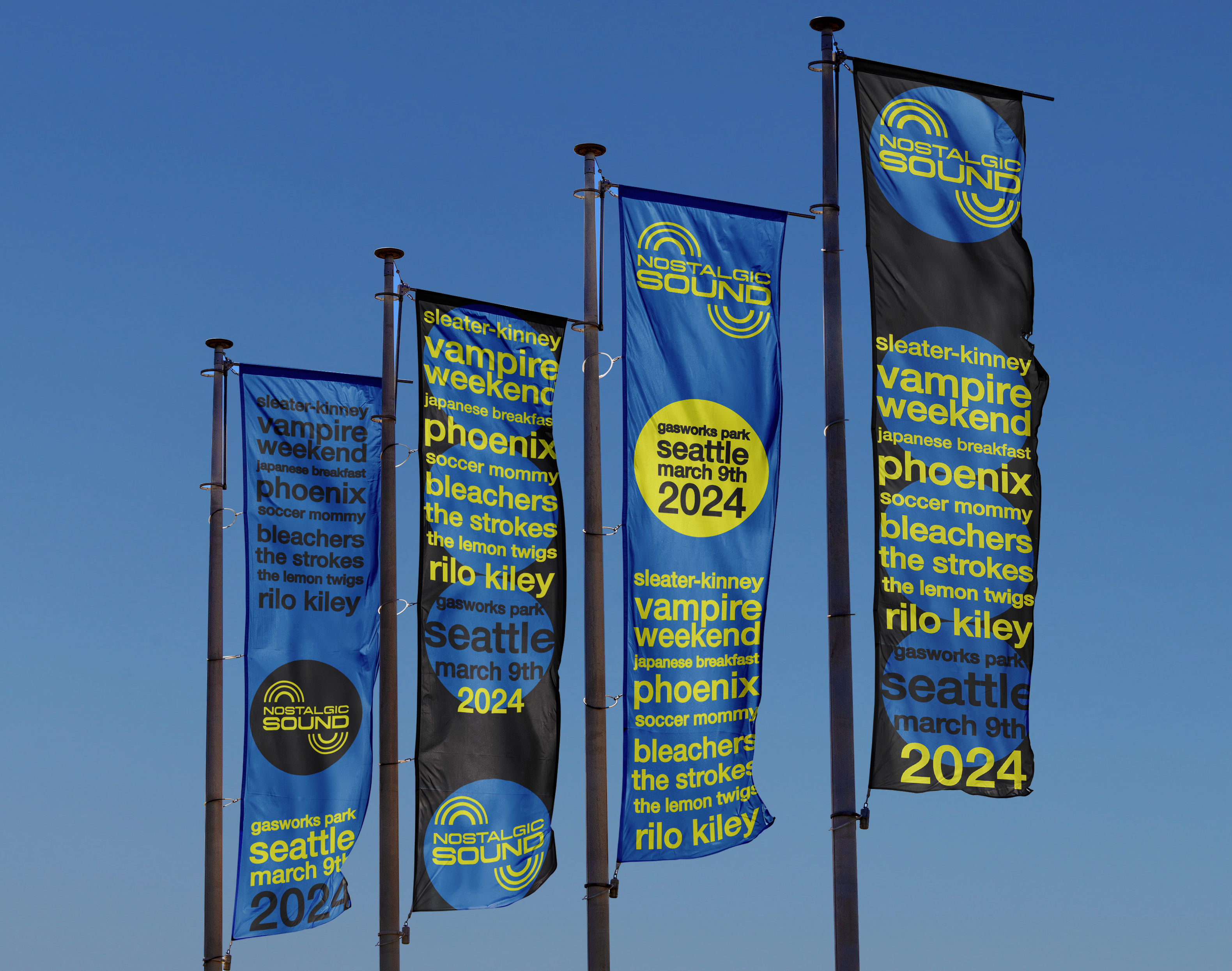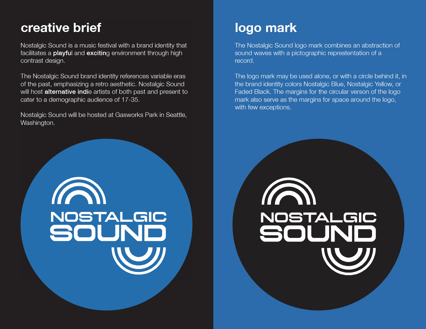 Nostalgic Sound is a dynamic festival celebrating alternative indie artists, both past and present, designed to appeal to a young, playful audience (ages 17-35). The festival's brand identity combines retro aesthetics with high-contrast design to evoke a sense of nostalgia while maintaining modern technology-age feel. Overall, the brand identity for Nostalgic Sound is playful, bold, and energetic, capturing the spirit of the festival while ensuring clear communication and engaging design. (See below for entire brand identity package).
